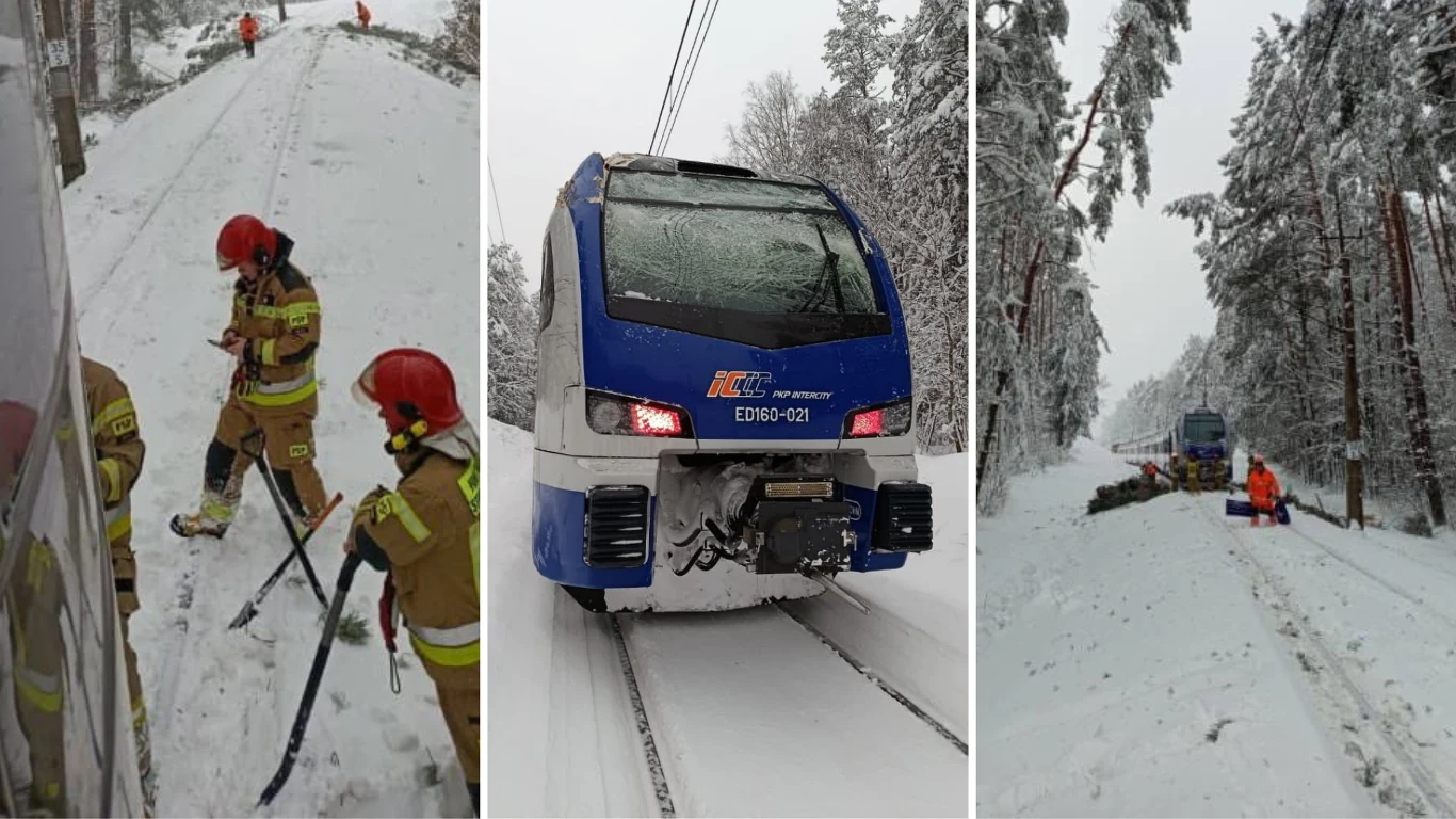 Drzewo uszkdziło sieć trakcyjną, co spowodowało unieruchomienie pociągu 'Kormoran' pod Nidzicą. Pasażerowie zmuszeni byli przebywać w pojeździe bez ogrzewania do czasu usunięcia przeszkody.