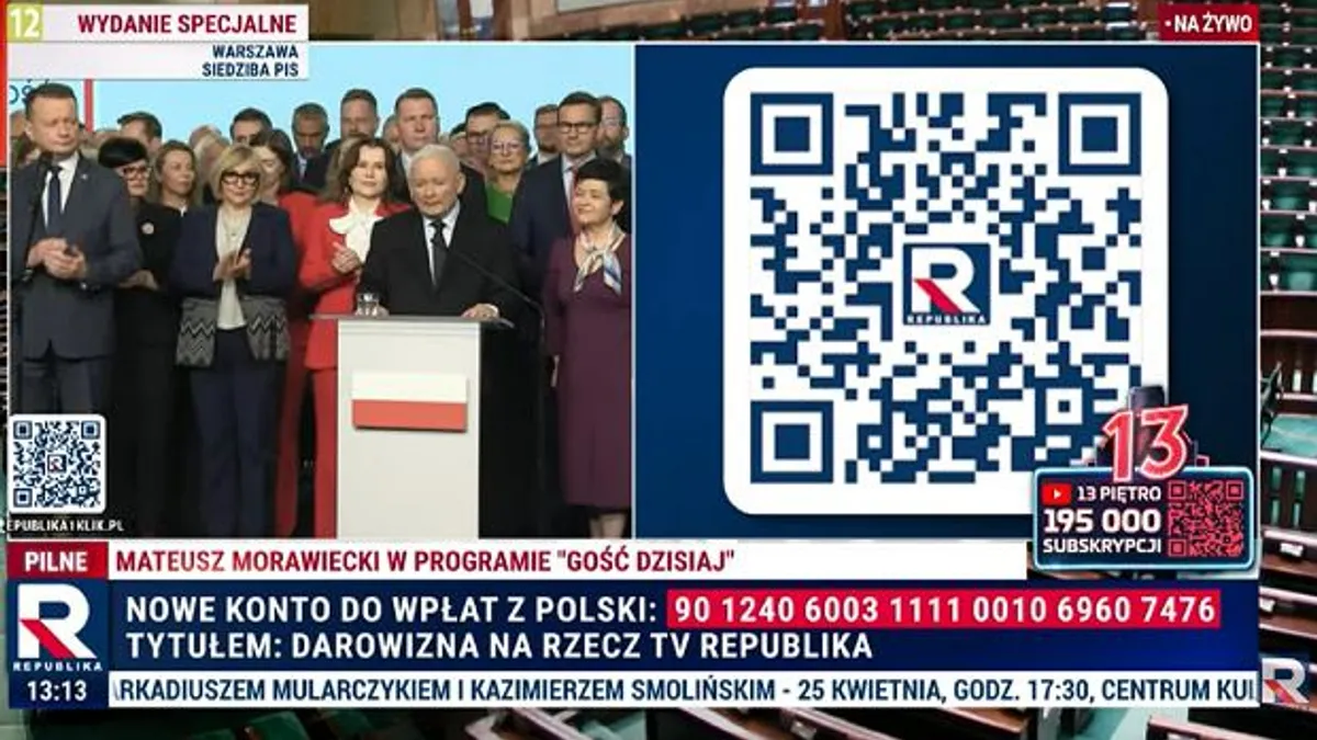 Kaczyński zaapelował o wpłaty na PiS. TV Republika wykorzystała tę okazję, prezentując swoją ofertę. Artykuł skupia się na działaniach polityków i ich komunikatach, bez wyolbrzymień czy emocjonalnej narracji.